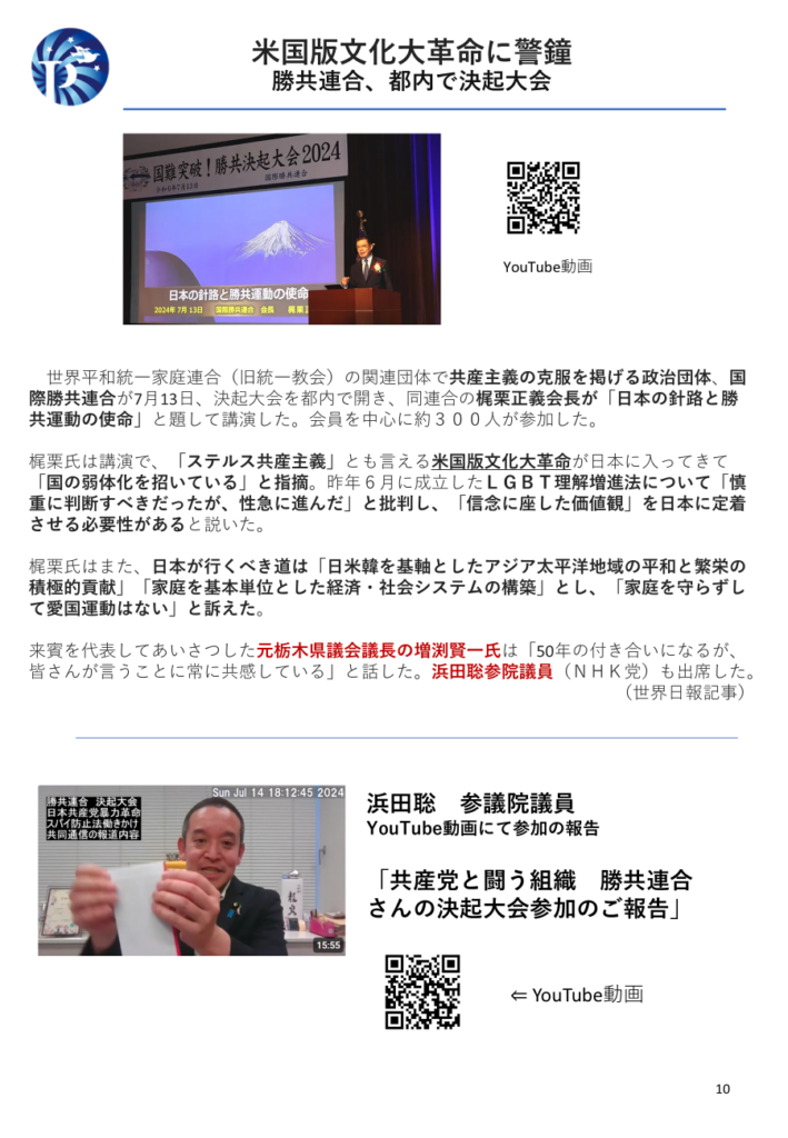 勝共連合 都内決起大会 参議院議員 浜田聡氏参加報告