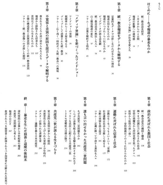 本書は、旧統一教会への報道が過熱し、「暴走」したとされる現象を分析し、その背景や影響を明らかにすることを目指しています。著者はメディアが作り上げたナラティブが社会に与えた影響を批判的に検討し、報道の偏りや事実検証の欠如を指摘します。特に、信者を一方的に悪者として描く報道姿勢に対し、中立性とファクトに基づく視点から異議を唱えています。