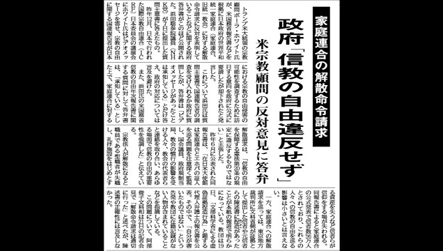 家庭連合の解散命令請求 政府「信教の自由違反せず」/世界日報20250227第2面【east-6500】